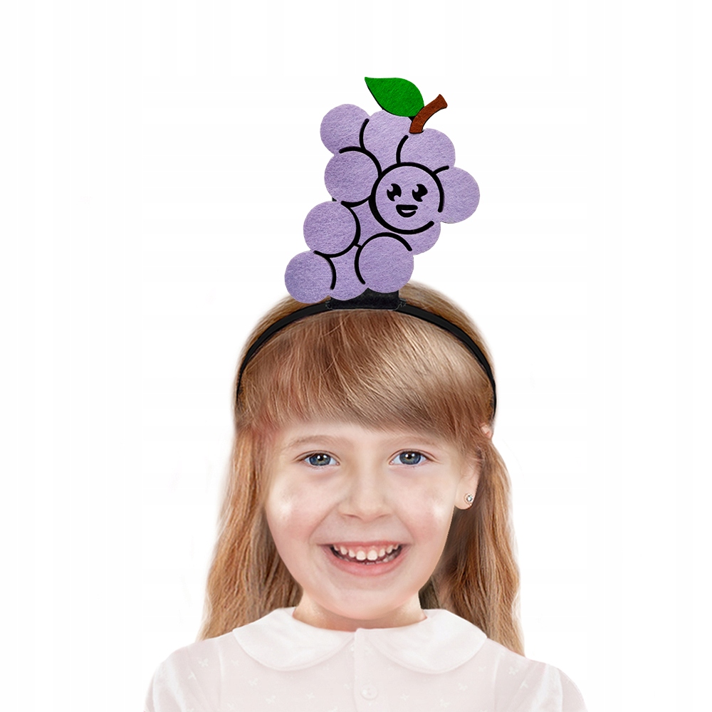 Повязка на голову с фиолетовой улыбающейся виноградинкой из фетра