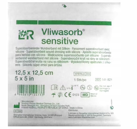 Vliwasorb Sensitive представляет собой повязку размером 12,5 см х 12,5 см. Показан для лечения ран со средним и сильным экссудатом, в том числе: язв на голенях, пролежней и язв диабетической стопы, а также распространяющихся послеоперационных ран. Повязка Vliwasorb Sensitive состоит из высокоабсорбирующего прокладочного слоя, слоя тканой ткани и мягкого силиконового контактного слоя.
