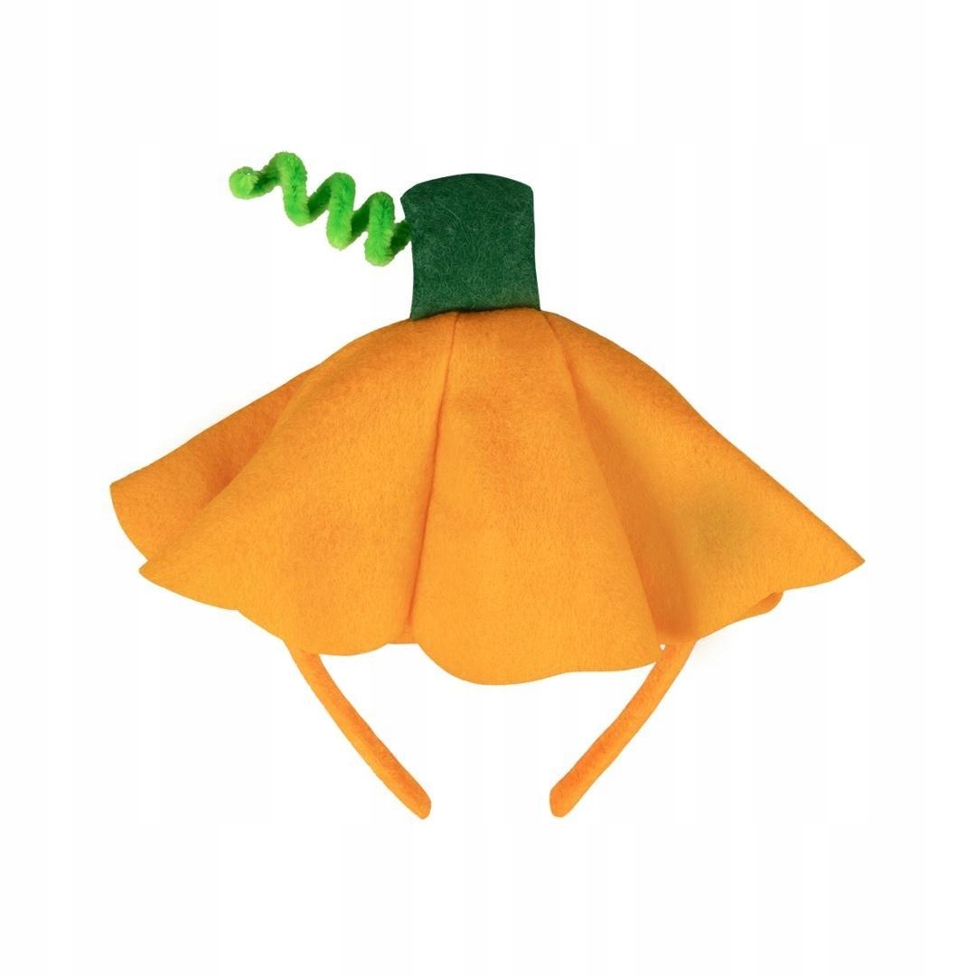 Веселая и очаровательная повязка на голову в виде шапки-тыквы - идеальный аксессуар для осенних праздников и костюмированных вечеринок. Выполнена из нежно-оранжевого материала и украшена зеленым хвостиком.