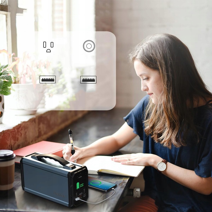 Корпус серебра составляет металл, а черные концы пластиковы, более долговечные, чем другие генераторы Soalr. Пиковая мощность 300 Вт , пиковая мощность 350 Вт , емкость аккумулятора 60000 мАч и чистая синусоидальная волна десяти генераторов мощности может быть более стабильной; Низкий вес 2,55 кг делает его идеально впитанным в рюкзаке.