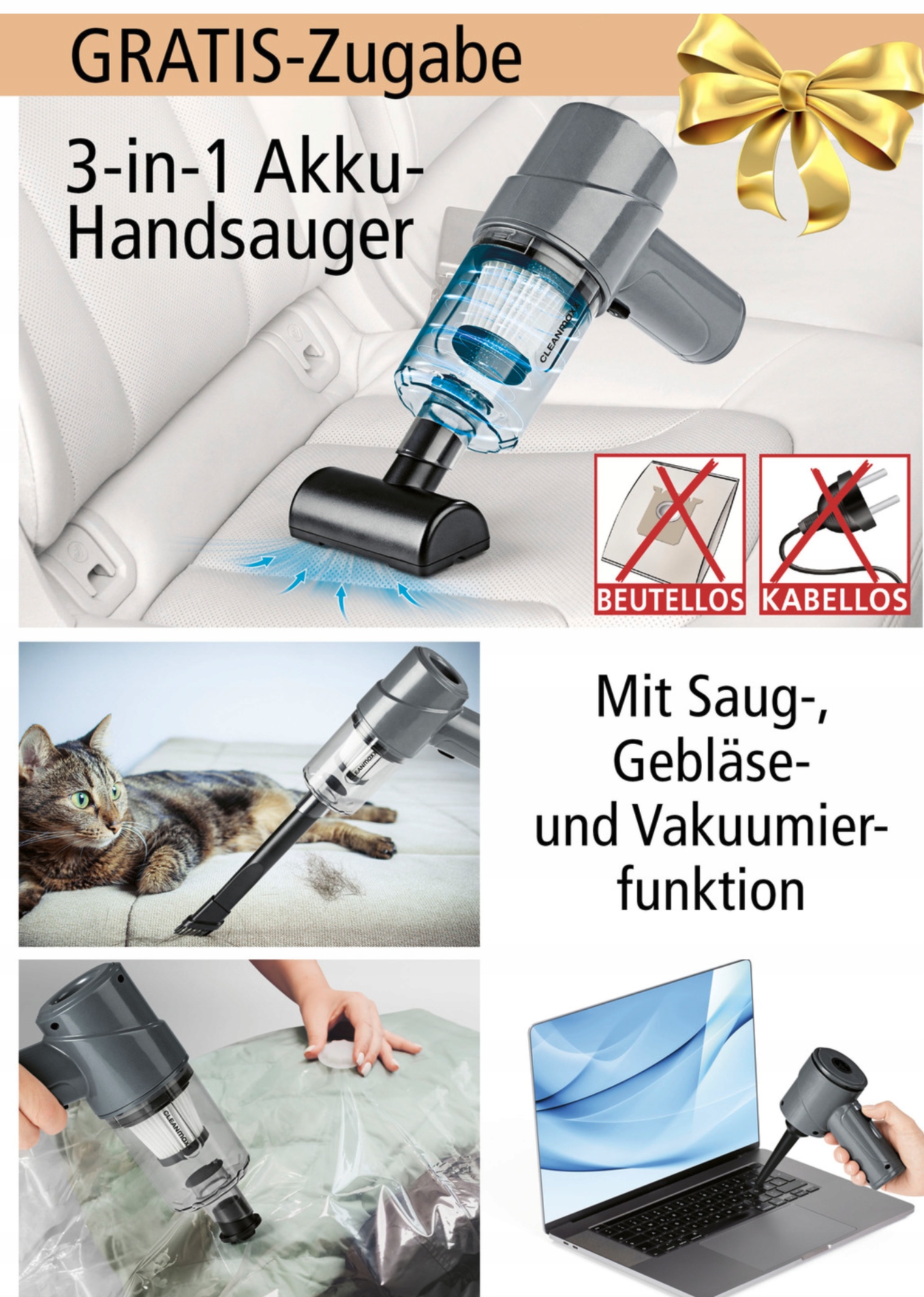 , включая 2 в 1 беспроводной ручке вакуумной очиститель - листовой воздуходувка и пылесос в одном устройстве. Беспроводная и легкая, весит всего 0,6 кг. Для тщательного и эффективного пылесоса в самых маленьких углах. Например, крошки можно легко выдуть из клавишных, в то время как волосы и торговые центры из домашних животных пылесоны от диванов и автомобильных сидений в мгновение ока. с функцией вакуумной сварки , чтобы сохранить место хранения одежды и многое другое. более. С фильтром HEPA. Мощный 7,4 В литий-ионная батарея, которой достаточно в течение 20 минут. Пыль -контейнер с емкостью 150 мл.