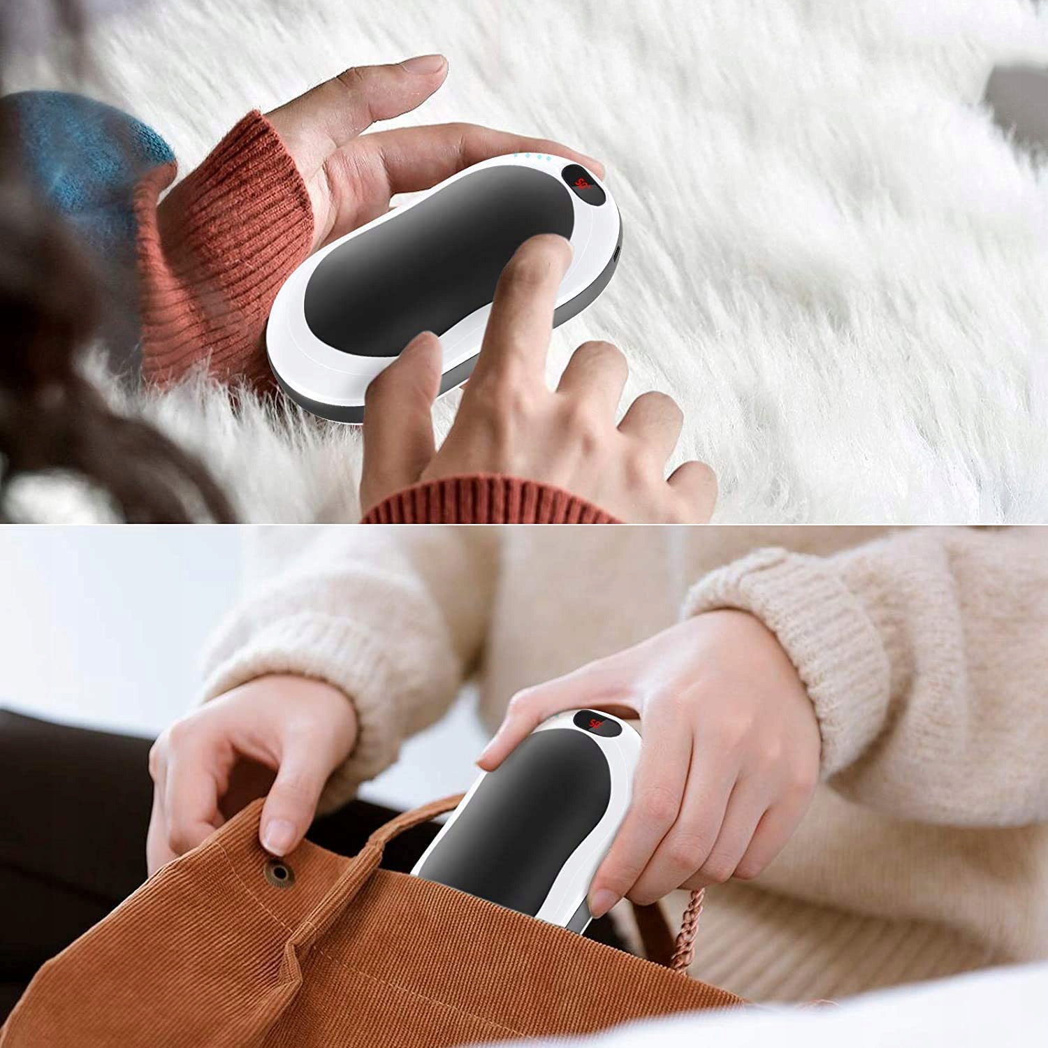- - Многофункциональный, используется в качестве аккумулятора, грелки для рук, фонарика и массажа функция. Помимо согрева рук, его также можно использовать в качестве запасного аккумулятора для мобильных телефонов, чтобы заряжать телефон в экстренных ситуациях.
