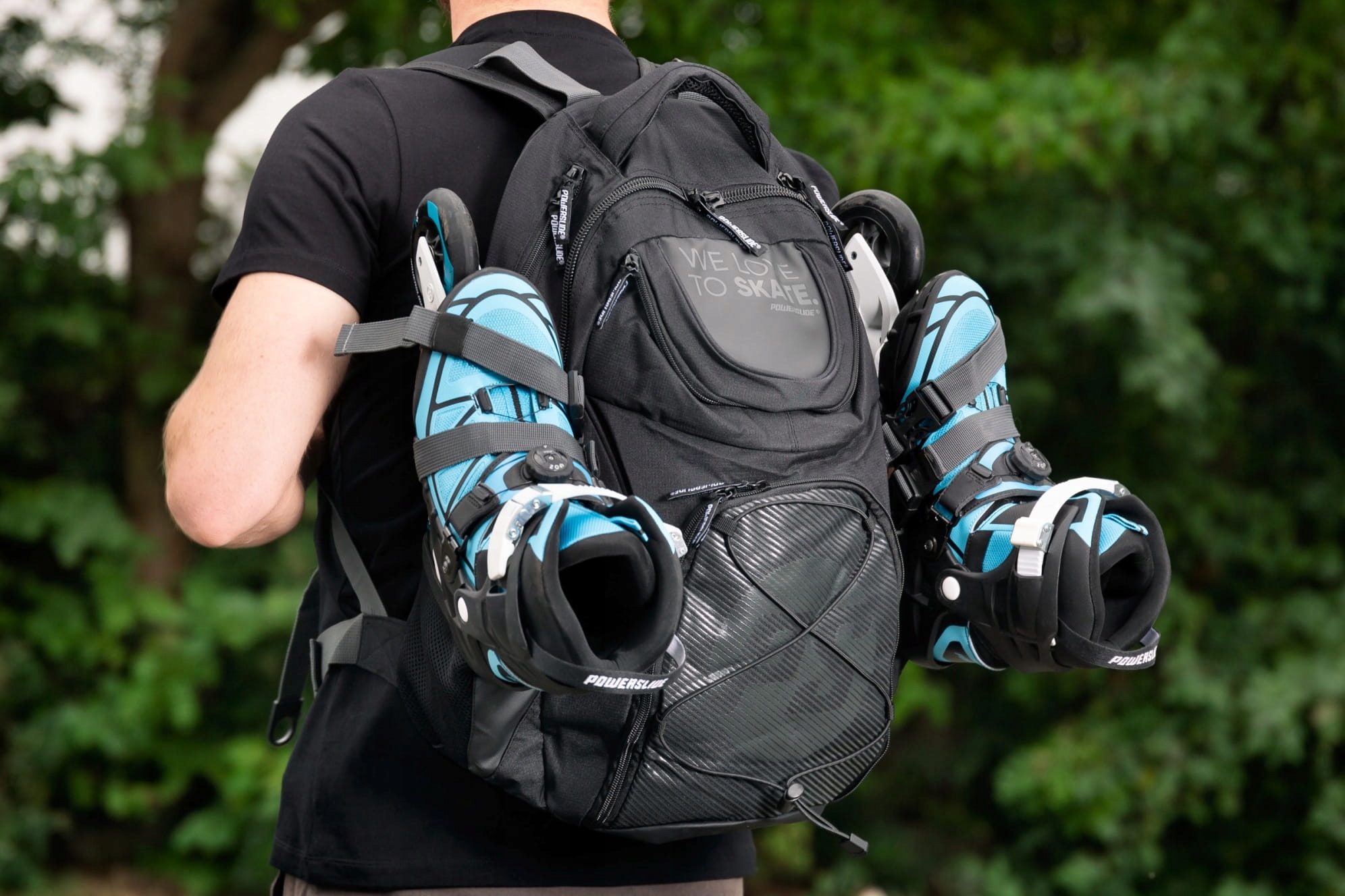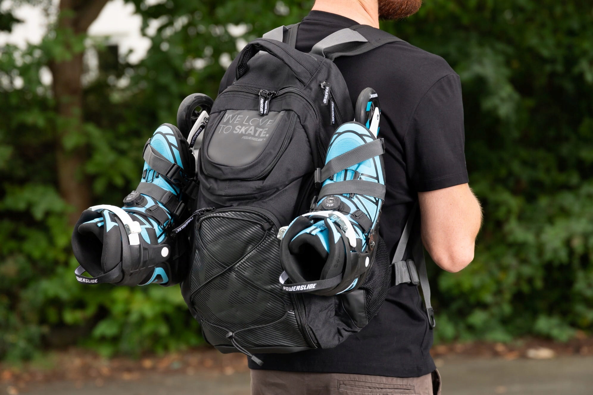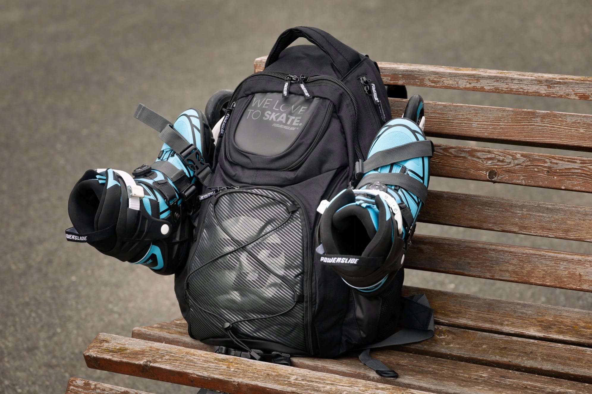 Рюкзак Powerslide WE LOVE TO SKATE для роликовых коньков Рюкзак идеально подходит для перевозки тяжелых коньков с твердым корпусом.