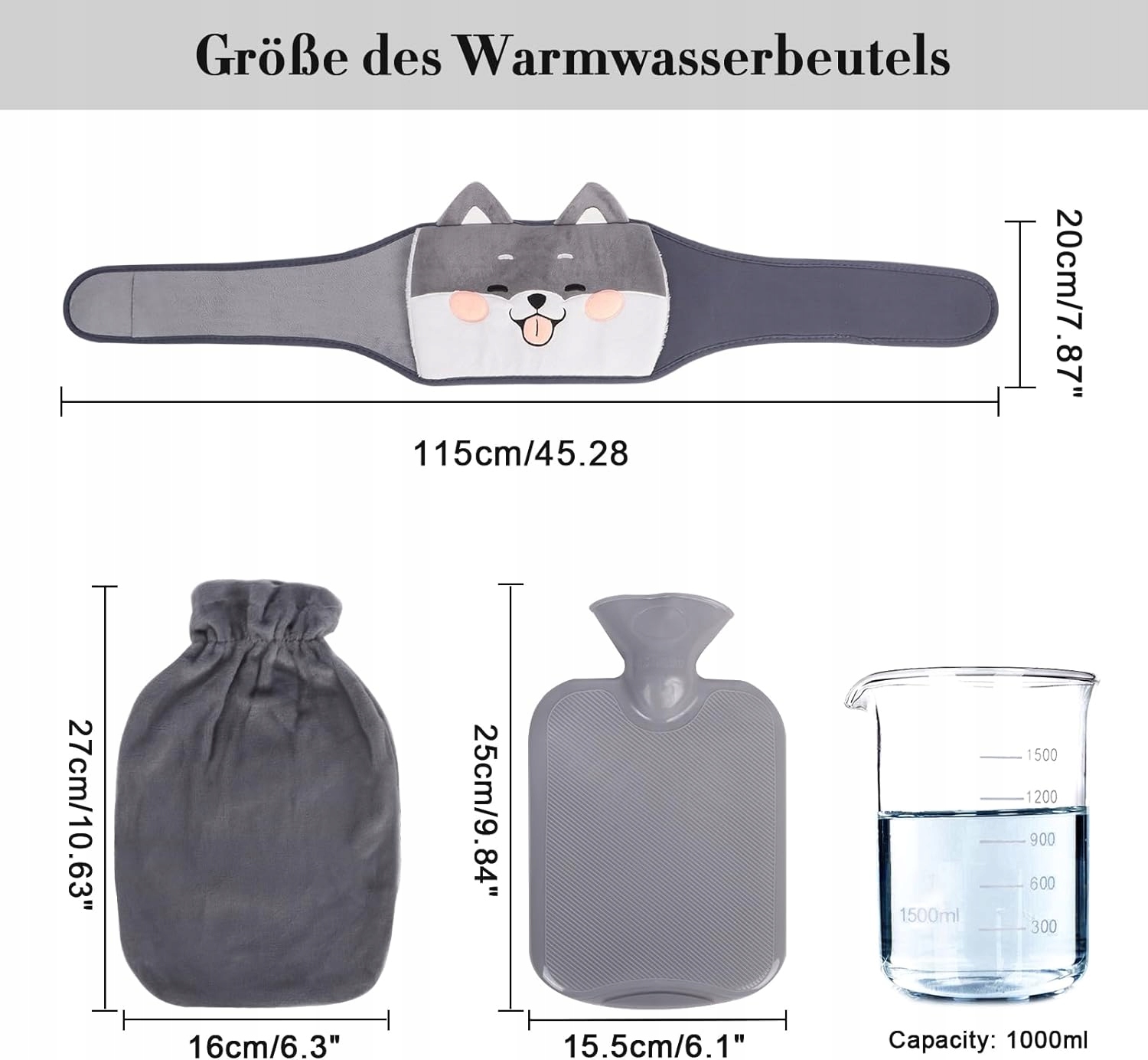 Пояс для грелки 1 л, ремень для грелки, для собак, грелка 3 в 1, портативная грелка из ПВХ с мягким чехлом и поясной наволочкой, резиновый мешок для теплой воды для шеи, спины, рук и ног< /h1>