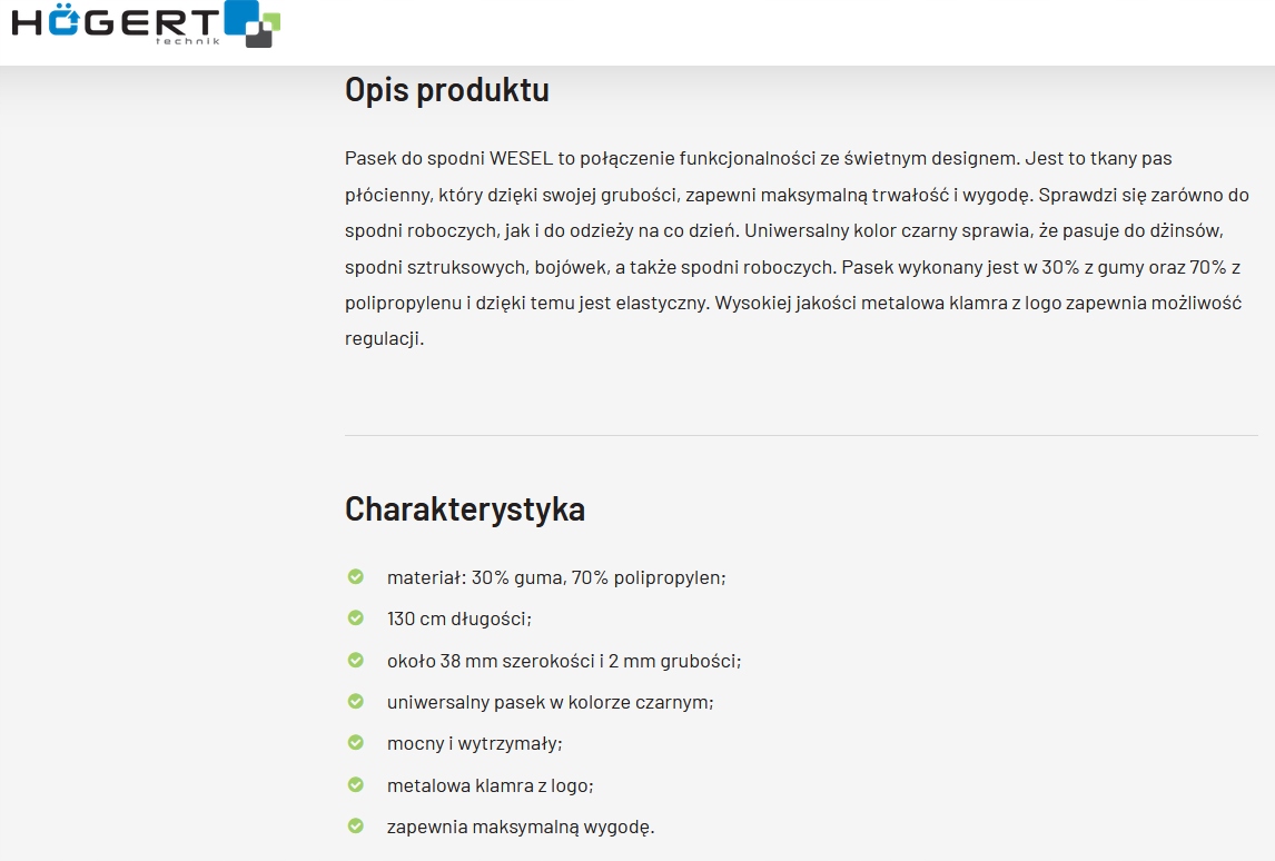 ПОЯСЬ HOEGERT ДЛЯ РОБОЧИХ БРЮК 130см ВЕСІЛЬНИЙ