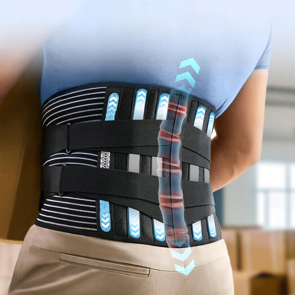 🌟 Высокоэффективный ортопедический поясничный упор: Пояс FREETOO от болей в спине состоит из 4 эргономичных алюминиевых пластин и 2 пружинных стальных стержней, образующих пространственную систему поддержки на 180°. Благодаря ширине 21 см он охватывает всю группу поясничных мышц, снижая давление на поясницу на 60%. 💪 Немедленное облегчение болей в спине, пояснице и ишиаса, вызванных выпячиванием межпозвоночного диска, напряжением от сидения или послеоперационным восстановлением.