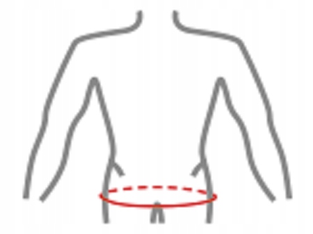 Измерение следует проводить вокруг бедра чуть ниже передней подвздошной ости. Если окружность ваших бедер находится между двумя размерами (например, 86 см), рекомендуем приобрести более длинный ремень.