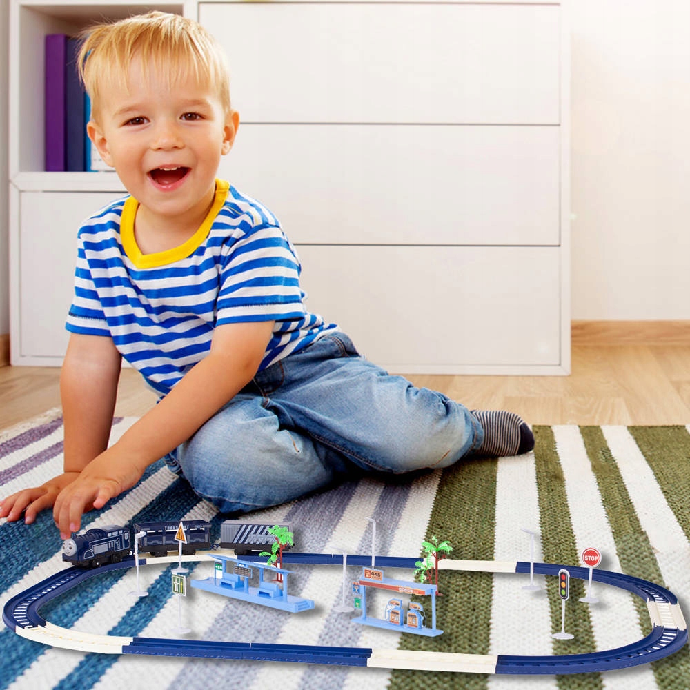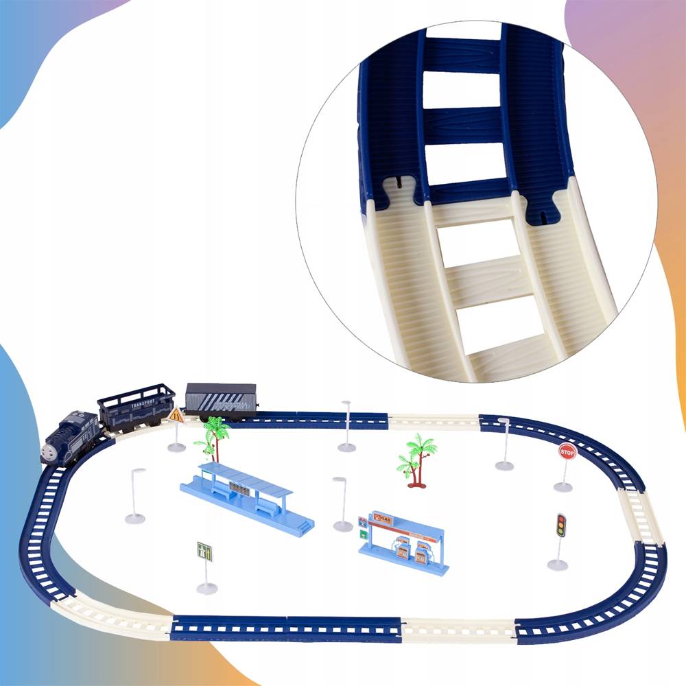 Большая трасса, позволяющая играть с прикрепленным поездом и двумя прикрепленными вагонами! Уникальный набор позволит вашему ребенку почувствовать себя настоящим железнодорожником!