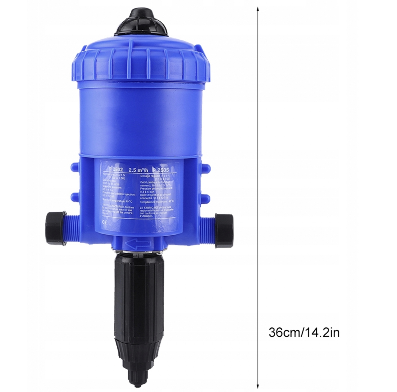 - Регулировка дозы: Независимо от потока воды, доза раствора строго пропорциональна количеству воды, входящей в устройство, обеспечивая точное и эффективное использование удобрений или других жидкостей.