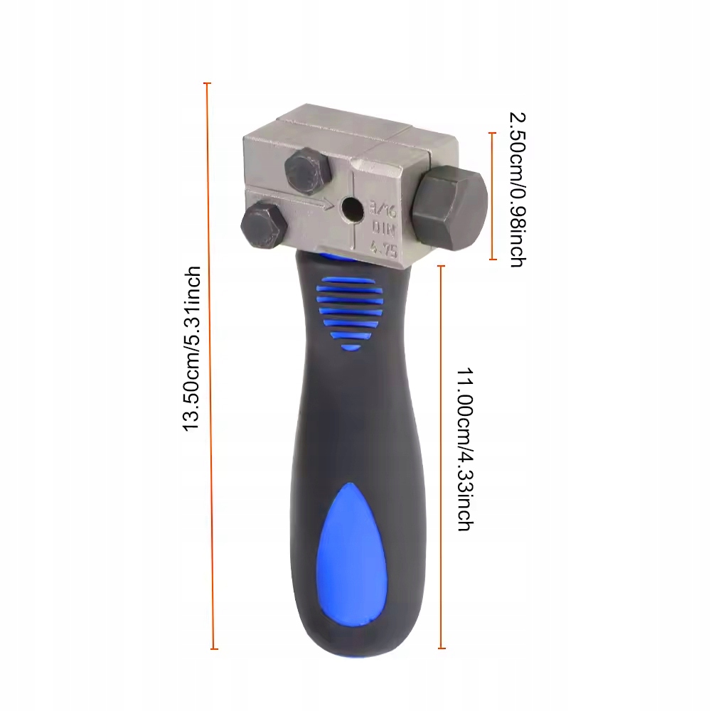 Вы можете сделать основные типы жестких тормозных шлангов с этой прагой. Инновационная конструкция - процесс подкрепления осуществляется путем затягивания клубня в виде винта, способность скручивать медные, алюминиевые, медные и стальные трубы. С помощью этой прессы вы также сделаете раковину на старом кабеле непосредственно под автомобилем без необходимости разобрать всю линию