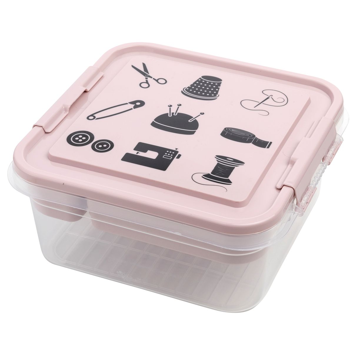 Организатор на практической брендовой нити, идеально подходящей для организации швейных аксессуаров. Контейнер состоит из съемного четырехбольного картриджа с отсеками, в котором вы можете поместить наиболее важную посуду и большой контейнер, в котором остальные подойдут. Контейнер изготовлен из высококачественных материалов, что гарантирует его долговечность и сопротивление повреждениям. Дополнительным преимуществом является крышка (закрытая с клипами) с мотивами, относящимися к шитью.