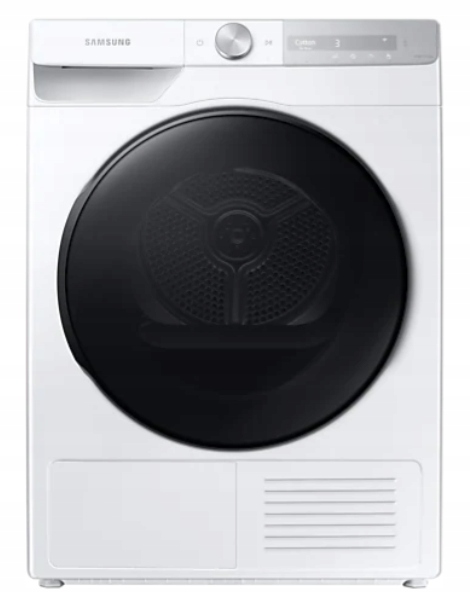 Сушилка конденсационного типа Samsung DV90T7240BH, с тепловым насосом, загрузка 9 кг, белая, с черной дверцей, с подключением Wi-Fi.