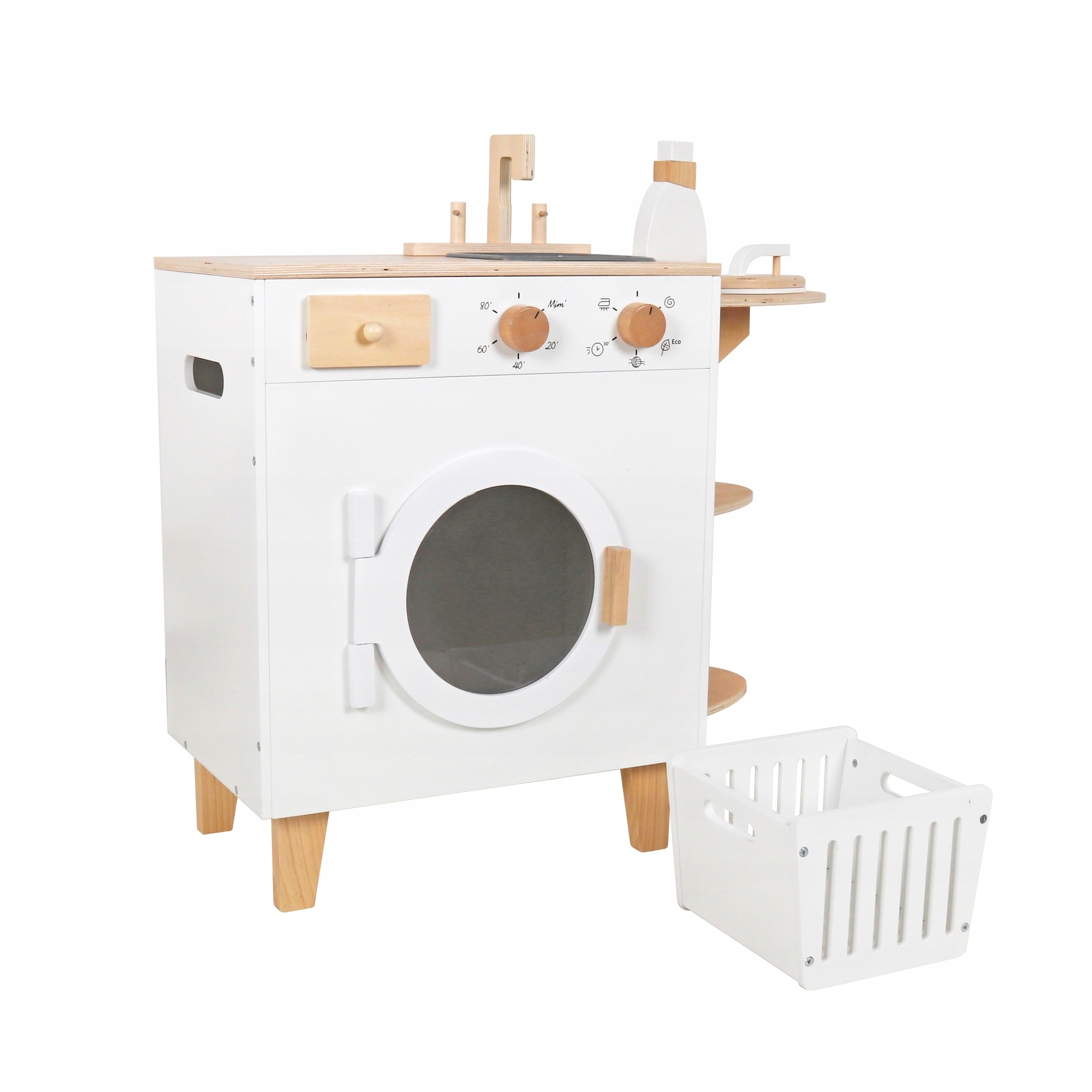 ДЕРЕВЯННАЯ СТИРАЛЬНАЯ МАШИНА С АКСЕССУАРАМИ KINDERLLY гладильная доска утюг корзина для белья