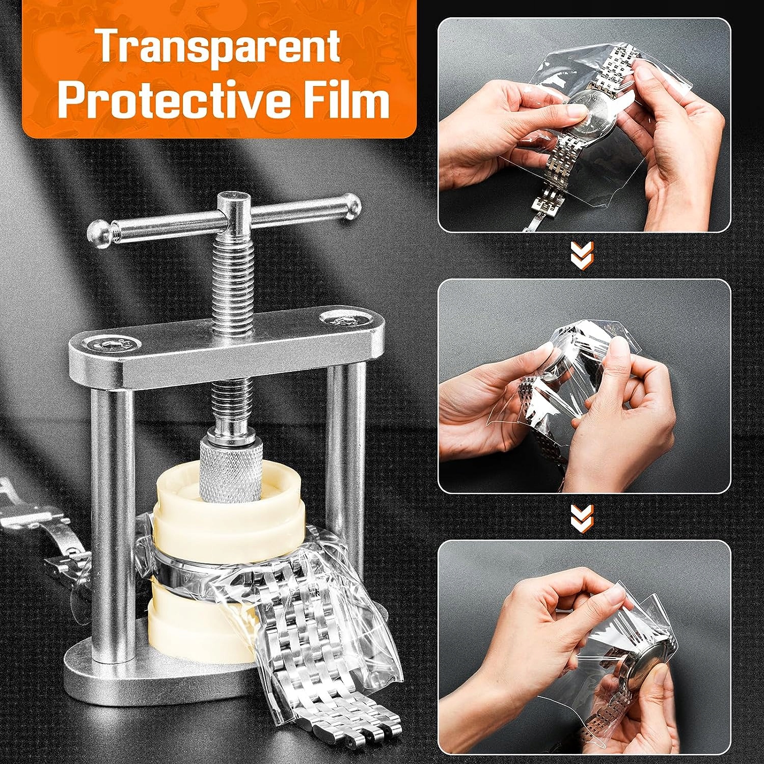 Наш инструмент для прессования часов снижает риск соскальзывания ваших часов, если вы поворачиваете ручку и медленно нажимаете на нее.