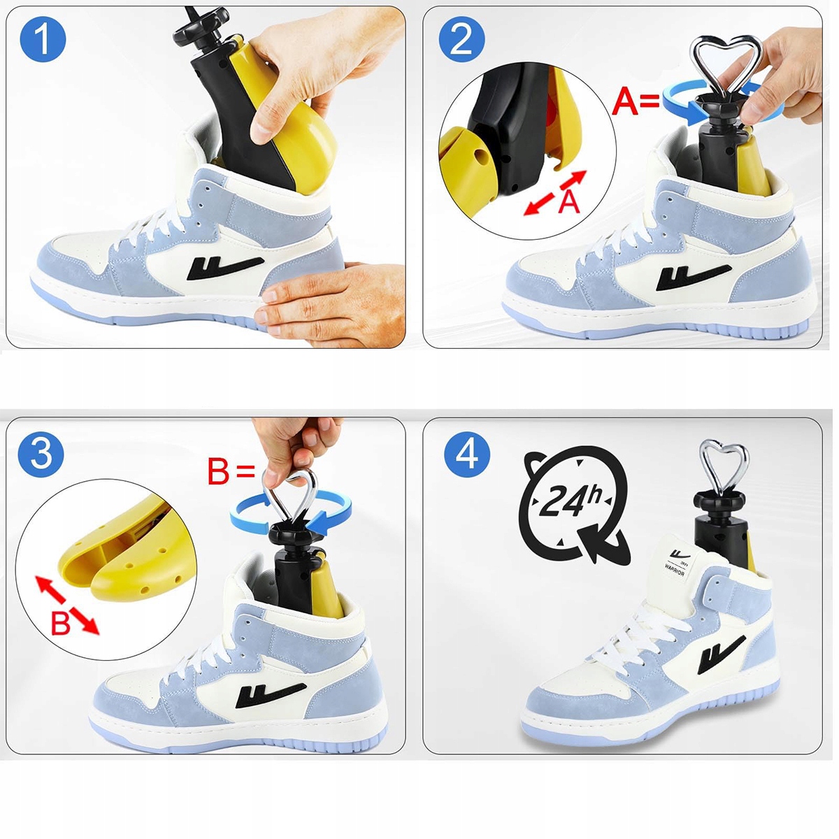 Легко в использовании: просто поместите правила в обувь, поверните их в соответствии с инструкциями и оставьте их на 24-48 часов, чтобы обувь растянулась.