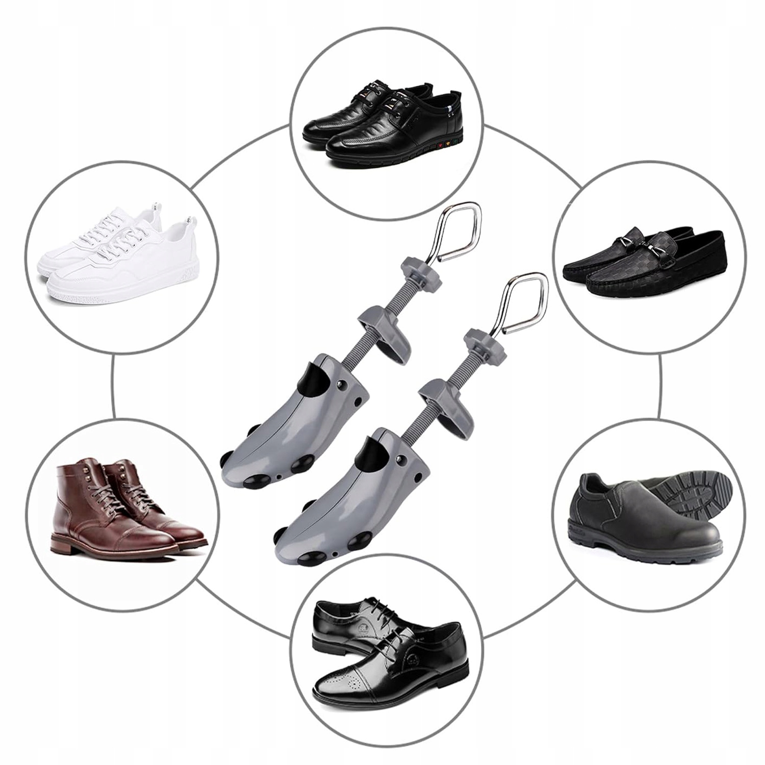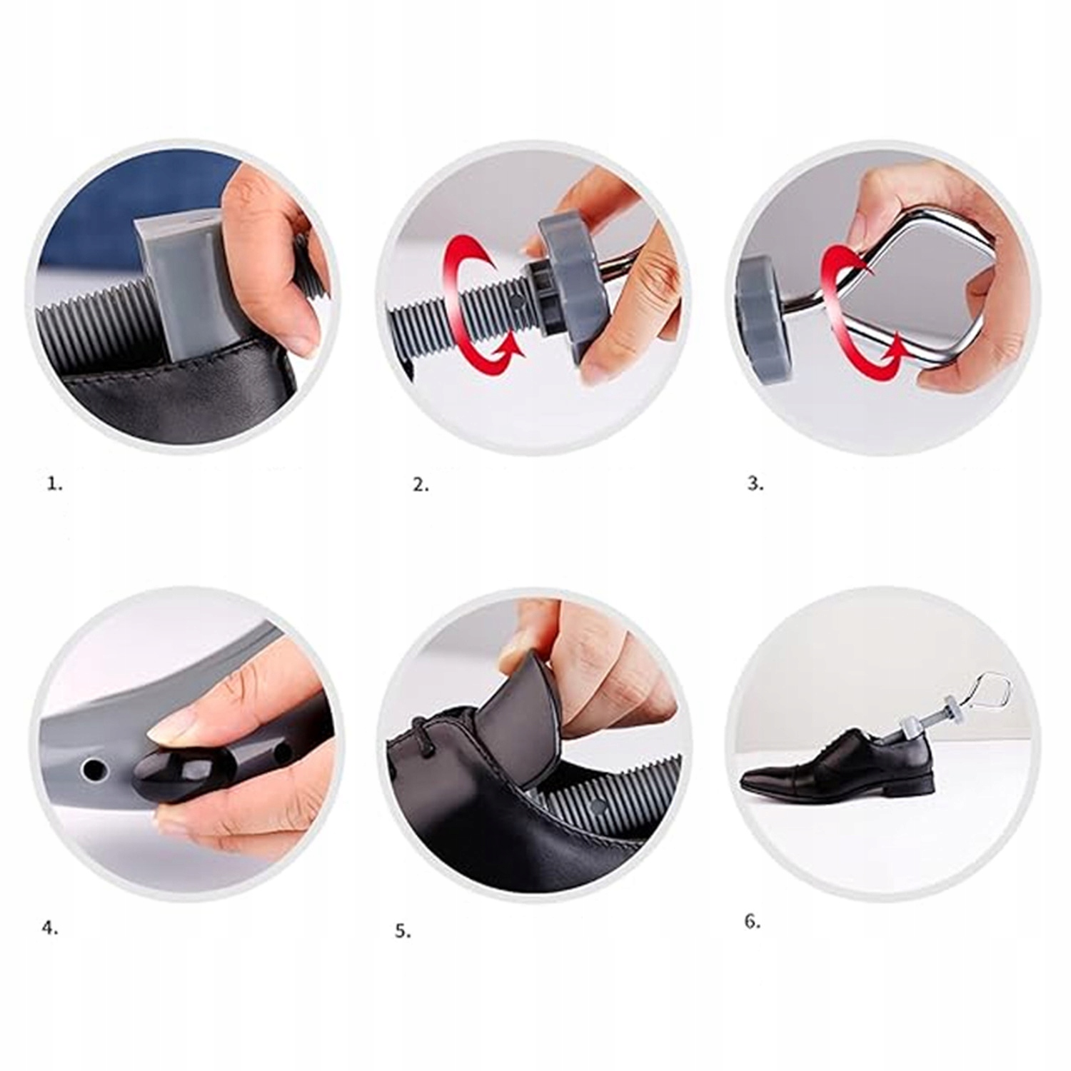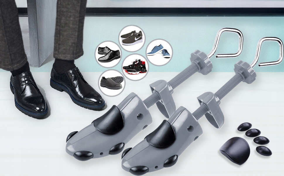 - Легко в использовании: поместите насадку в обувь, скрутите металлическую ручку в соответствии с движением часовой стрелки, чтобы расширить обувь, и ручку в соответствии с движением часовой стрелки, чтобы увеличить длину обуви. Поместите их в соответствующие отверстия, чтобы растянуть обувь в определенных местах, а затем поместите увеличивающиеся вставки, чтобы увеличить высоту обуви.