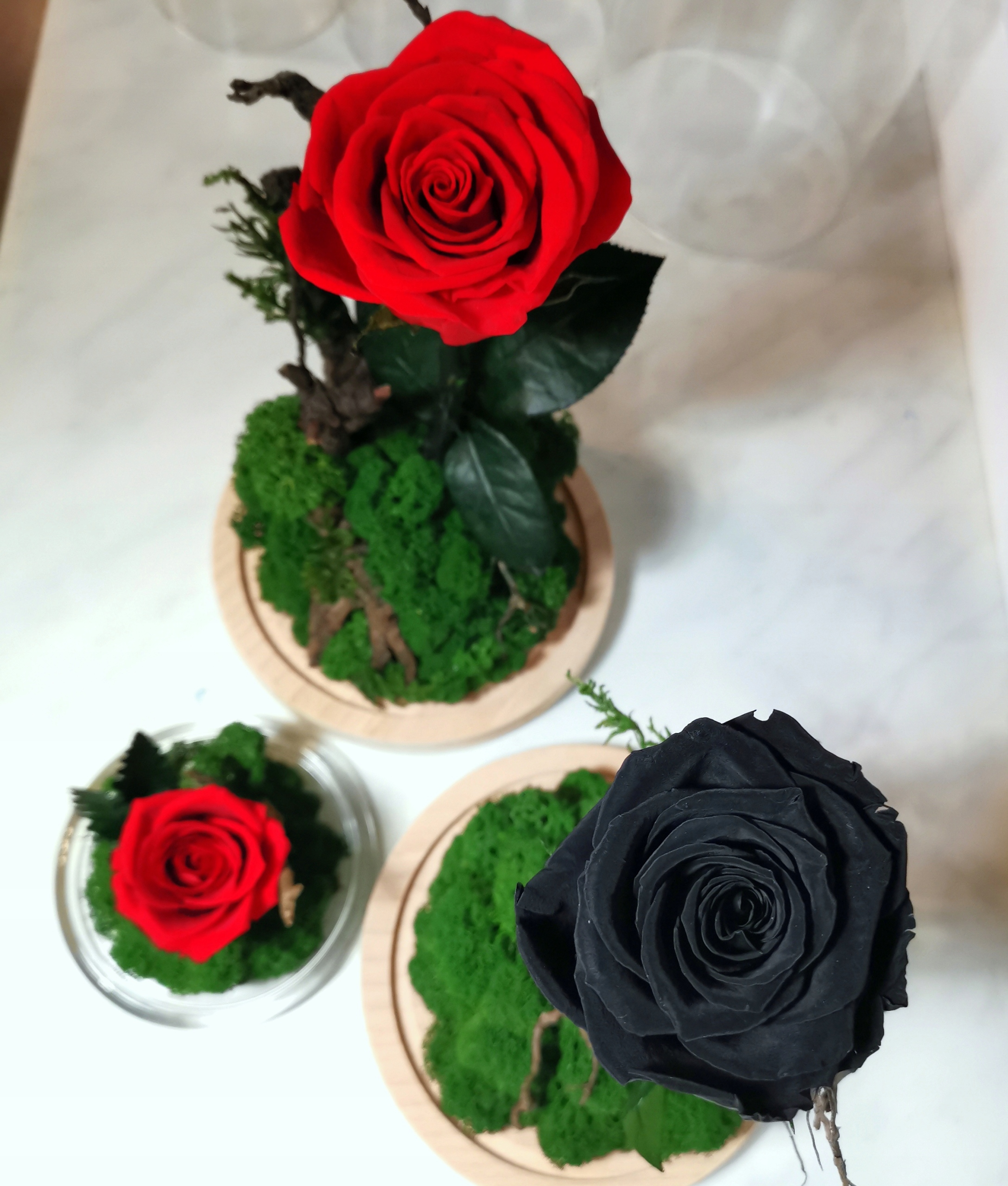 Prawdziwa wieczna róża w kopule XL 29cm CZARNA