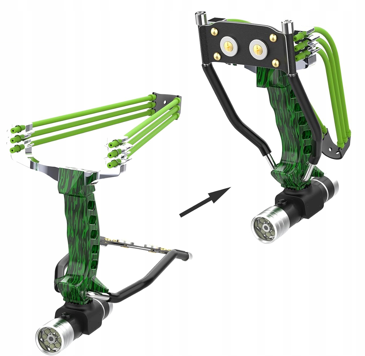 Улучшенные эластики увеличивают навыки и диапазон стрельбы. Более того, Tactical Slingshot особенно точен благодаря сильной и удобной ручке, что делает его эффективным инструментом. Более того, конфигурация с тремя ластиками с каждой стороны обеспечивает плавное запуск.