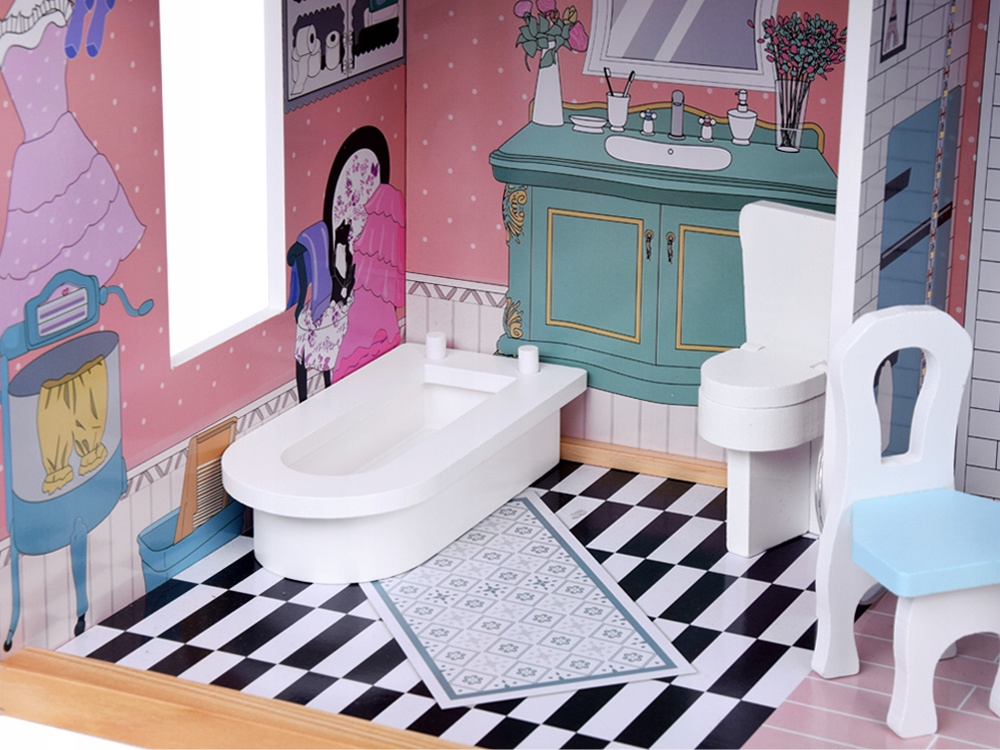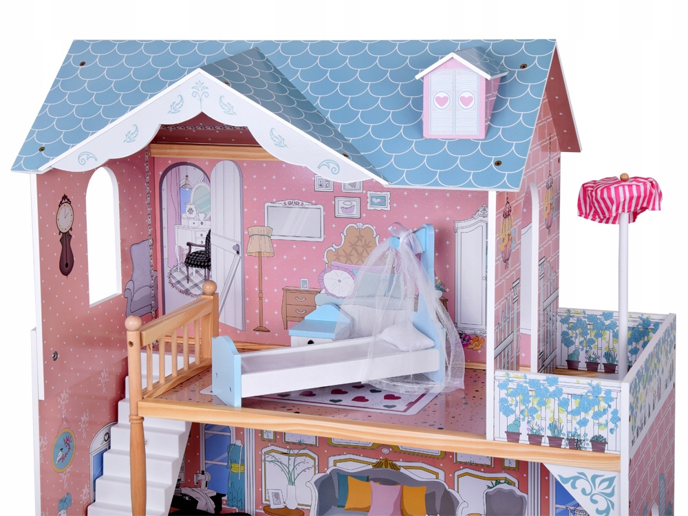 Большой деревянный кукольный домик с мебелью - Идеальное веселье в течение многих лет! Благодаря солидному дизайну и элегантному дизайну, этот дом предоставит многолетнее творческое развлечение