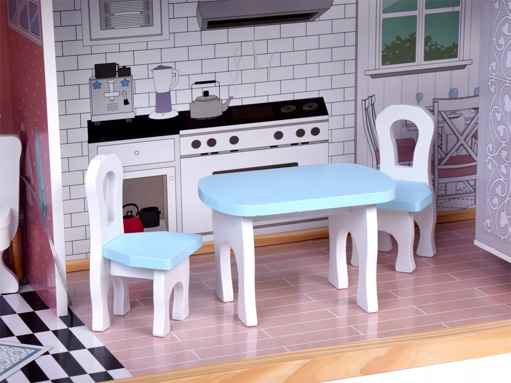 Набор содержит подробную деревянную мебель, идеально подходящую для внутренней части дома. Мебель может быть свободно размещена, что дает ребенку свободу аранжировки пространства.