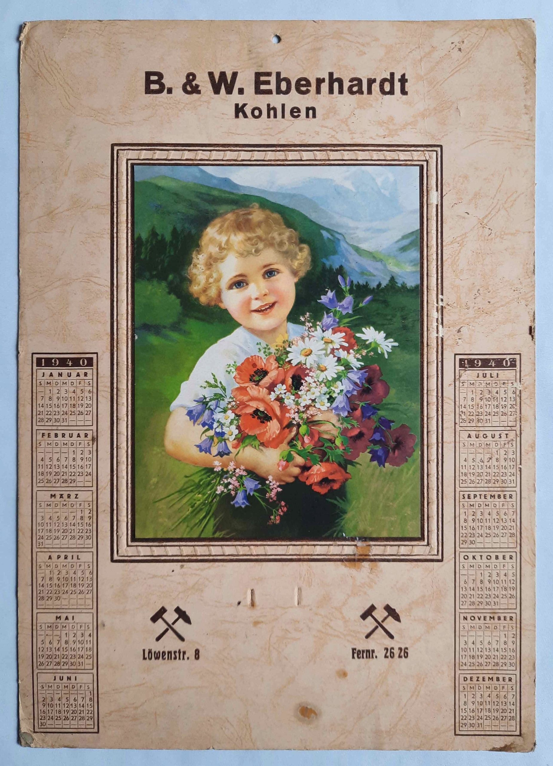 Красивый календарь добычи 1940 года старая реклама B & W Eberhardt Kohlen