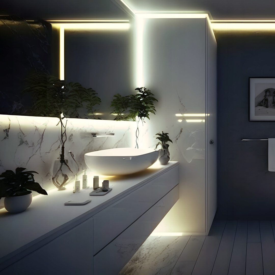 Это очень модный способ подсветки кухонной мебели, потолочных панелей, стен, полок и архитектурных элементов в интерьере, который придаст современный вид любому помещению.