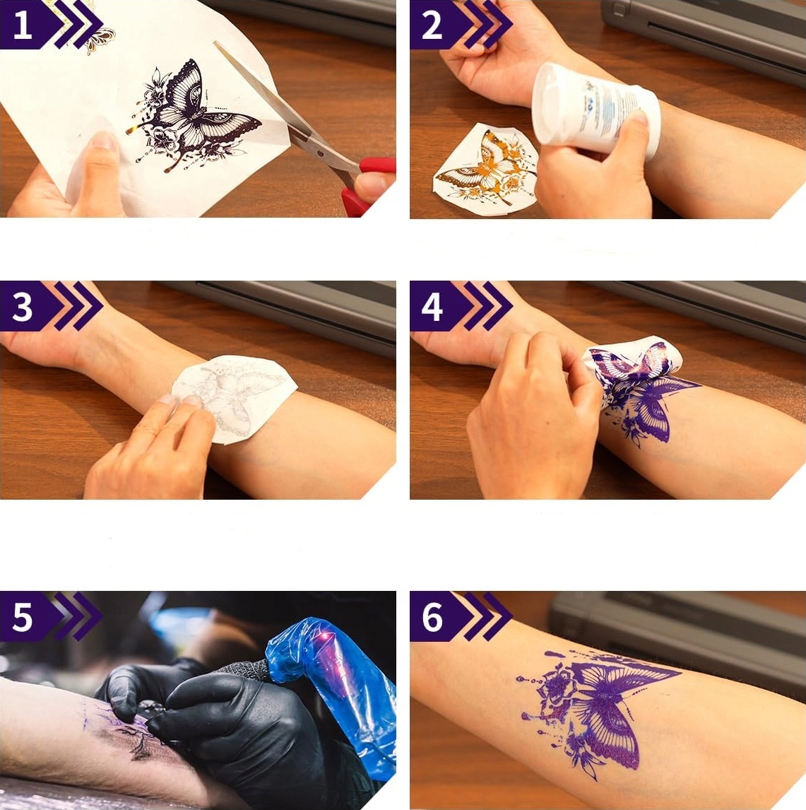 Два способа использования: Transfer Paper позволяет отслеживать фотографии из исходного источника, за которым следует незначительный передача бумаги и, возможно, на кожу. Высокая совместимость с тепловым копированием или точечными принтерами. Или просто следуйте оригинальному дизайну с шариковой ручкой для ручного рисунка.