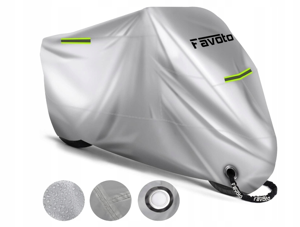 - Улучшенная мотоциклетная крышка Favoto изготовлена из прочной 210D полиэфирной ткани (о 1028G) и может защитить мотоцикл от ветра, дождя, снега, ультрафиолетового излучения, пыли, грязи, плохой погоды и возможных царапин. Вы можете поднять мотоцикл. Это означает, что ваш мотоцикл прикован к брезентам и оптимально защищен. С внутренним серебряным покрытием предлагается несколько вариантов вложения: универсальная гибкая полоса обеспечивает хорошее соответствие мотоциклу. Регулируемые ремни скрепления с защелками предотвращают лопаточку крышки на ветру. вызвать ухудшение некоторых материалов на мотоцикле. Полем Мотоцикл может быть скрыта в поставляемом пакете хранения, когда она не используется