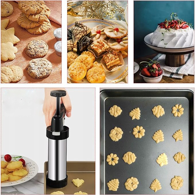 Каждая часть пресса печенья может быть легко удалена, а пистолет для сжимания печенья оснащен чистящей кистью, так что вы можете легко очистить пресс. Это может быть повторно использовано. Сопла и шаблоны могут быть вымыты в посудомоечной машине. Благодаря этой прессе вы организуете вечеринку на своей кухне, украсите самые красивые печенья и очень интересно наслаждаться временем, проведенным с семьей или друзьями.
