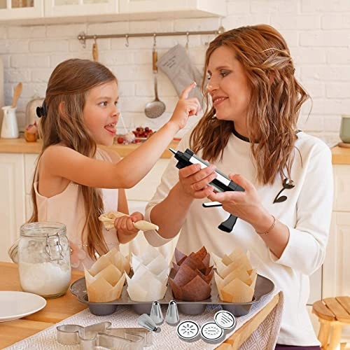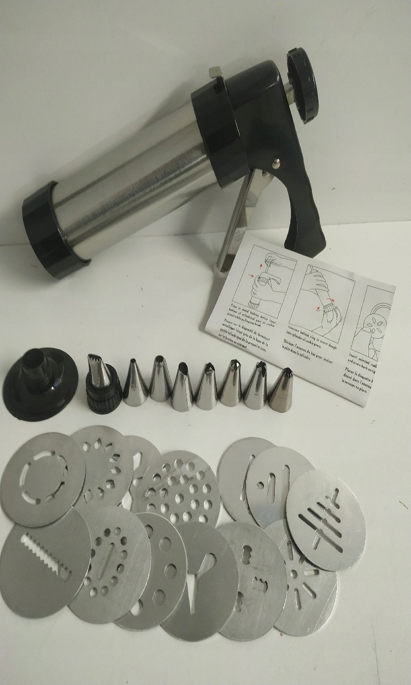 - Эргономичный дизайн - пресс для выпечки хорошо лежит в руке, достаточно положить тесто в печенье. пистолет, установите желаемую форму/насадку и сожмите.