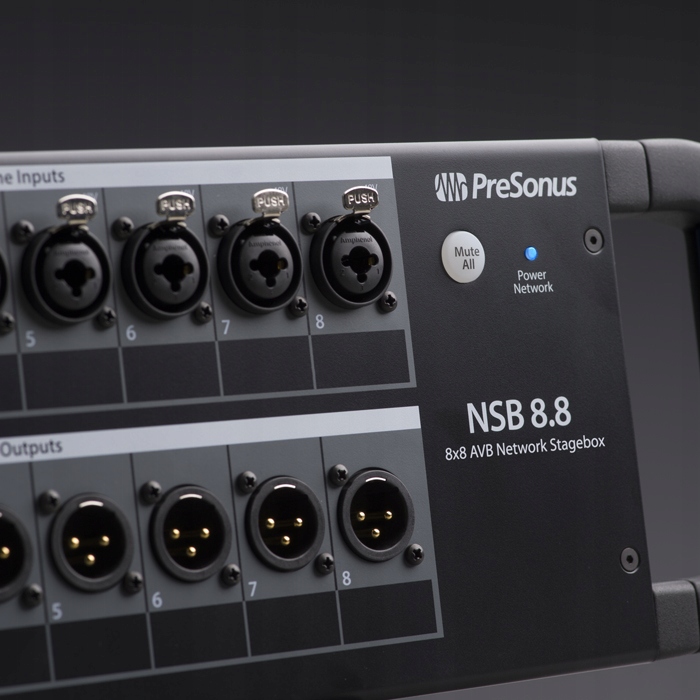 NSB 8.8 обеспечивает восемь заблокированных комбинированных входов (микрофон/линейный) с дистанционными контролируемыми предусилителями XMax с фантомной мощностью и элементами управления и усилением в случае общих входов. Все входные данные могут быть отрегулированы из консоли Studiolive III и из бесплатного, тактильного программного обеспечения Surface UC для Mac, Windows, iPad и Android. NSB 8.8 имеет восемь выходов с заблокированными розетками XLR. Существует также кнопка для молчания всех сигналов в аварийной ситуации - отключите все.