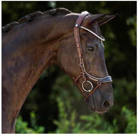 Сделано из натуральной загорелой кожи. Он мягко выровнен в каждой чувствительной точке на голове лошади.