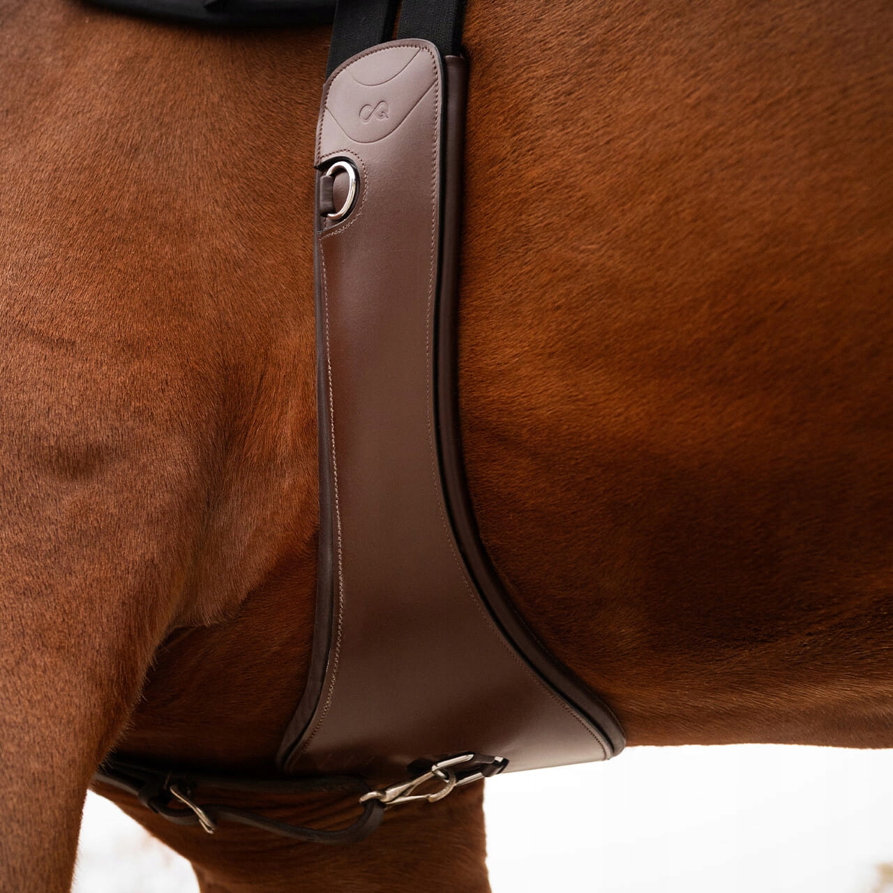 - Универсальный обхват имеет тройной ластик с обеих сторон, обеспечивая необходимую свободу движения, чтобы лошадь могла дышать и двигаться без препятствий. Ластик достаточно устойчив, чтобы предотвратить скольжение седла.
