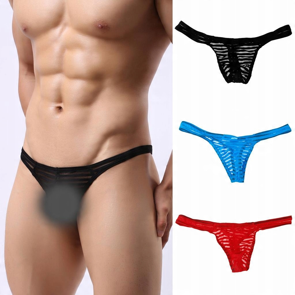 Prettyia 2x Sexy Men Нижня білизна з Т-образною спинкою, смугаста сумка, бікіні-стрінги