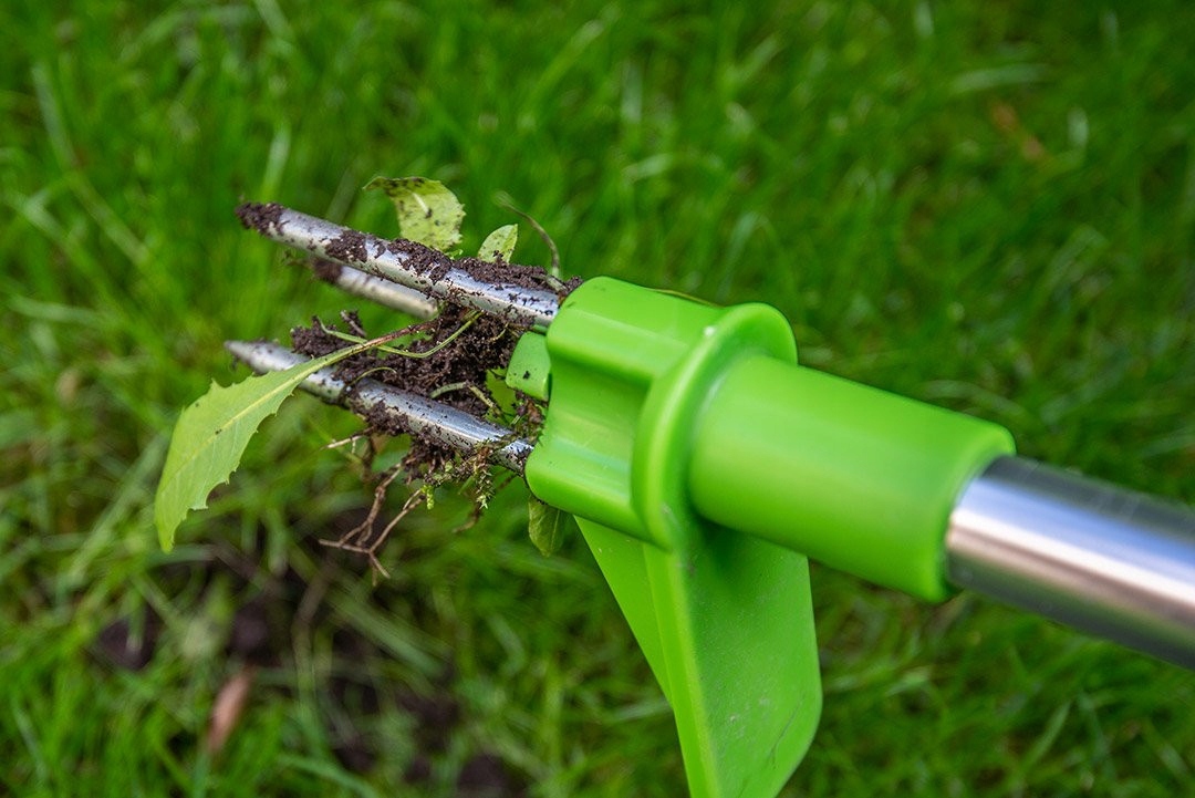 Щипец позволяет эффективно удалять сорняки, не наклоняясь.