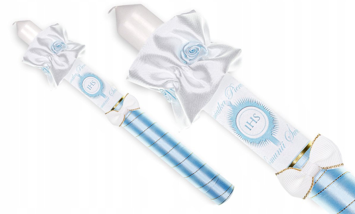 — свеча, украшенная серебряным атласом и жемчугом. Марианский цвет приложения делает свечу посвященной мальчикам, но в некоторых регионах Польши и девочкам