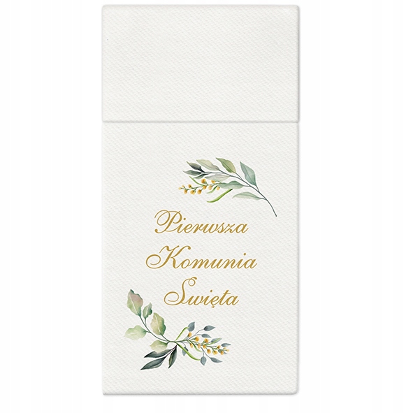 Три -слойные бумажные салфетки в тонких цветах с золотой металлизированной надписью Первое святое причастие.