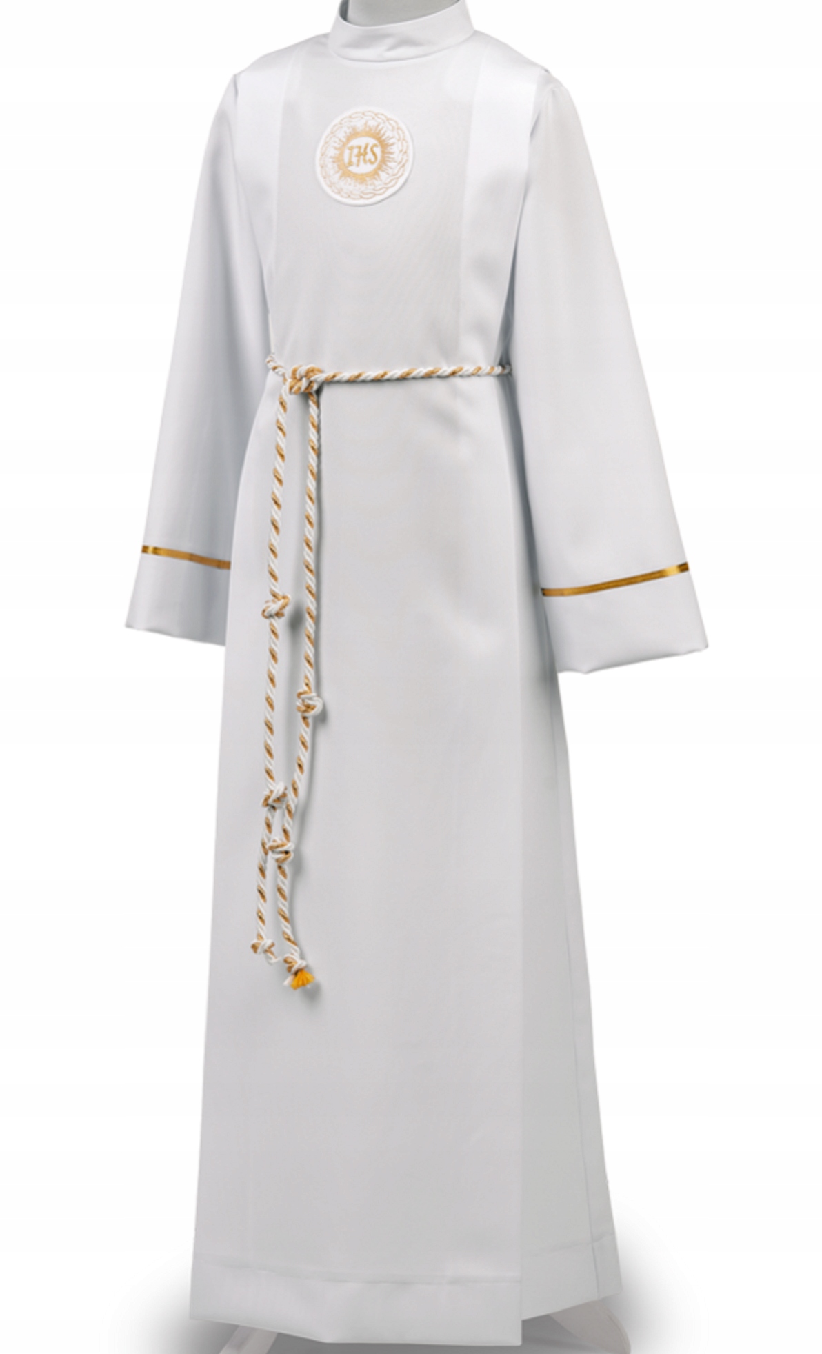 Альб для причастия, с длинными рукавами и изящным воротником-стойкой. Тщательно сделано. Современный и практичный в использовании материал, который мало мнется.