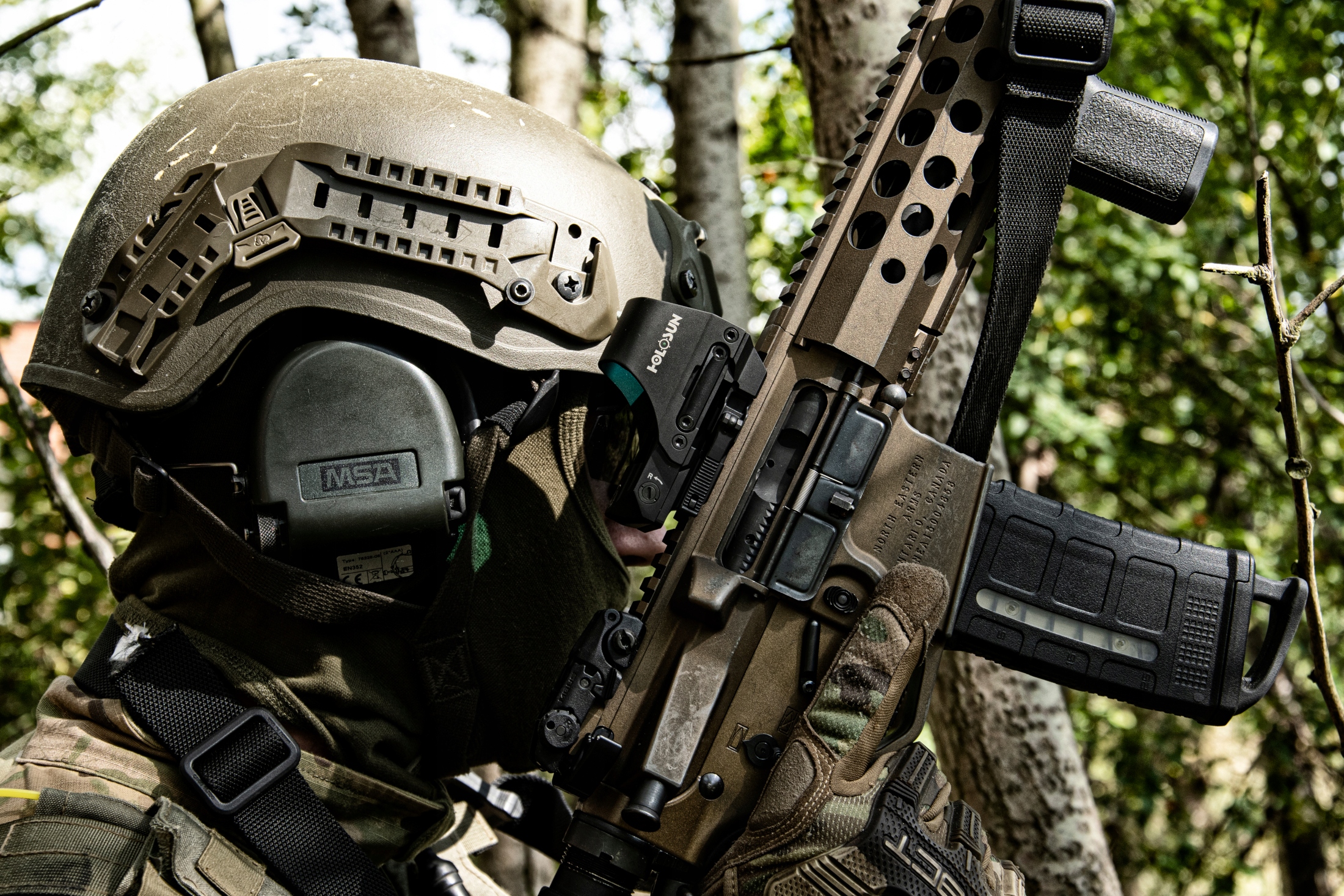 Устройства этого типа не требуют энергии. Любые проблемы, связанные с повреждением электроники, разряженным аккумулятором или проблемами с работой при экстремальных температурах, просто перестают существовать. Фотоувеличитель представляет собой объектив в прочном алюминиевом корпусе, обеспечивающий 3-кратный оптический зум. Одним решительным движением руки можно наклонить увеличитель в сторону и воспользоваться 1-кратным увеличением коллиматорного прицела. Когда ситуация изменится и выстрел нужно будет произвести на большее расстояние или потребуется большая точность, просто наденьте увеличитель обратно на прицел.