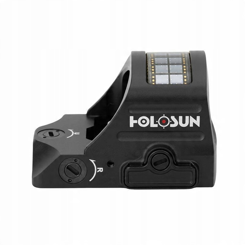 HE407C — открытый коллиматорный прицел, предназначенный для использования на пистолетах. Он оснащен красным светодиодом Holosun Super LED со сроком службы батареи до 50 тысяч часов, точкой 2МОА, системой Solar Failsafe и функцией Shake Awake.