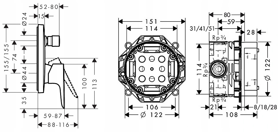 Комплект скрытого монтажа HANSGROHE верхний душ 30 BLACK