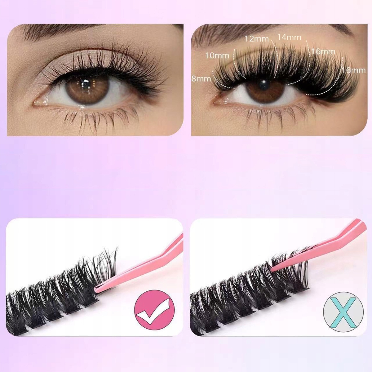 Этот незаменимый набор накладных ресниц для начинающих, сделанный своими руками, специально разработан для липких ресниц, подходит для различных потребностей в макияже и помогает новичкам легко освоить технику приклеивания ресниц и создавать естественные и красивые эффекты ресниц.