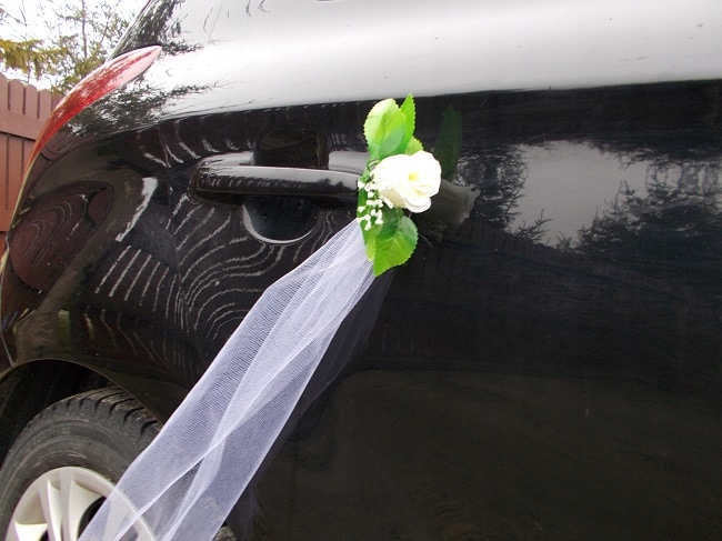 Оригинальное украшение для свадебного автомобиля.