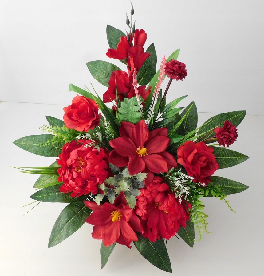 Прикраса могили, квіткова композиція, хризантема, червоний