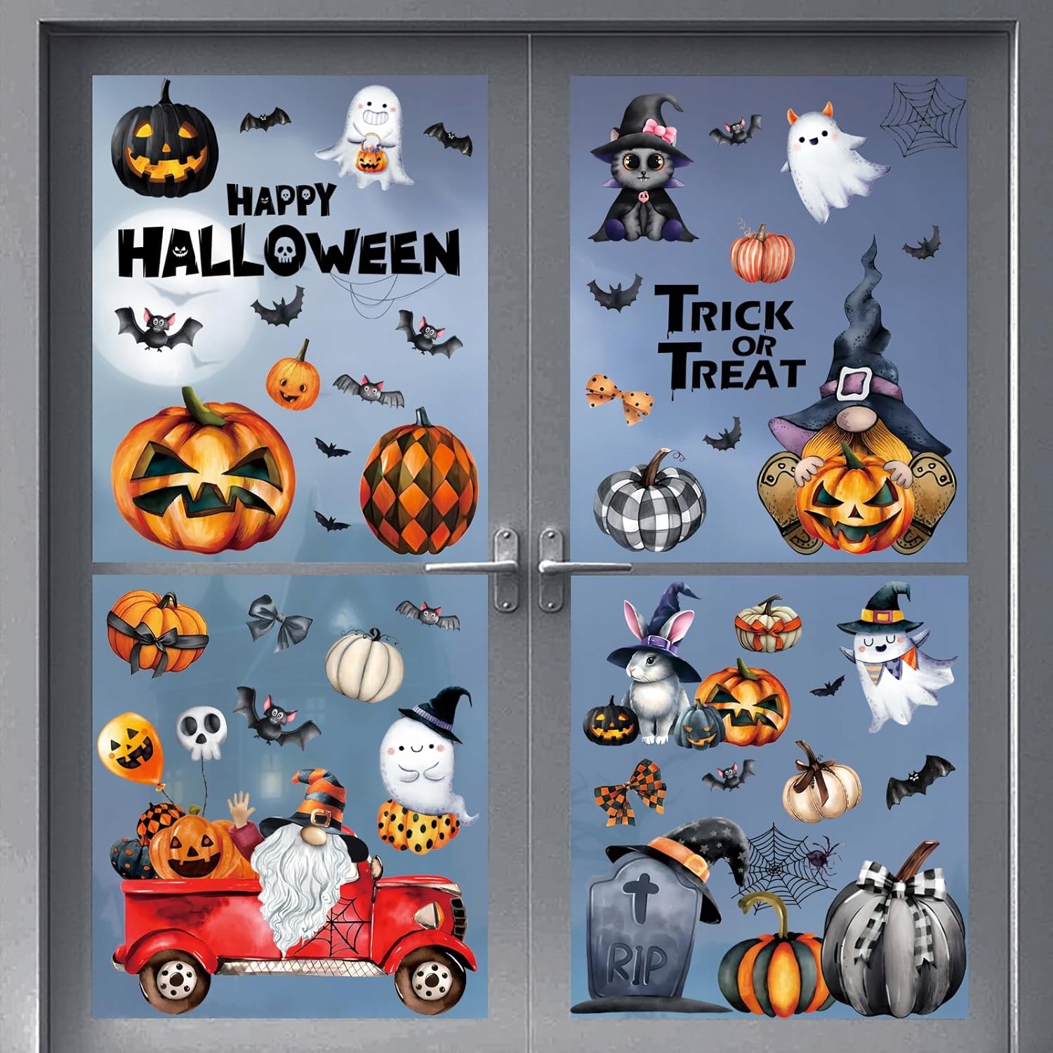 - В общей сложности 103 различных наклеек в виде призраков, ведьм, тыкв, монстров, летучих мышей, пауков, скелетов и многого другого.