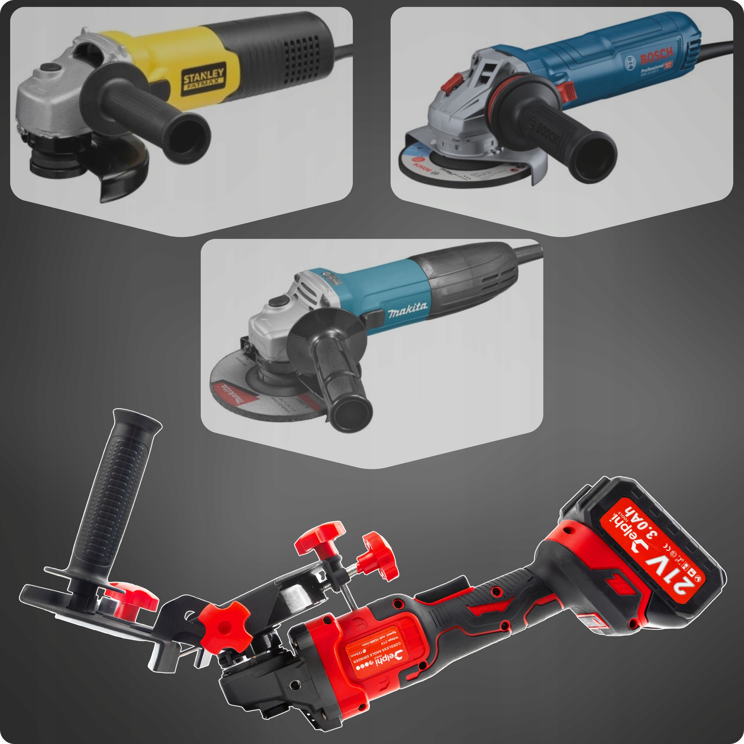 - Совместимость: все, наиболее популярные угловые шлифовальные средства 115-125 мм