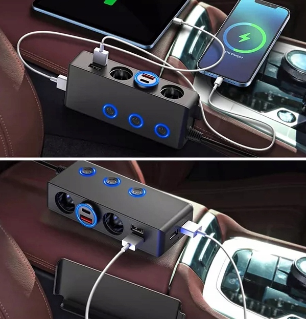 ➡️ Можно расширить прикуриватель вашего автомобиля с еще тремя розетками и обеспечьте их общую мощность 120 Вт (для автомобилей с напряжением 12 В) и 200 Вт (для автомобилей с напряжением 24 В) соответственно и используйте нужные вам устройства.