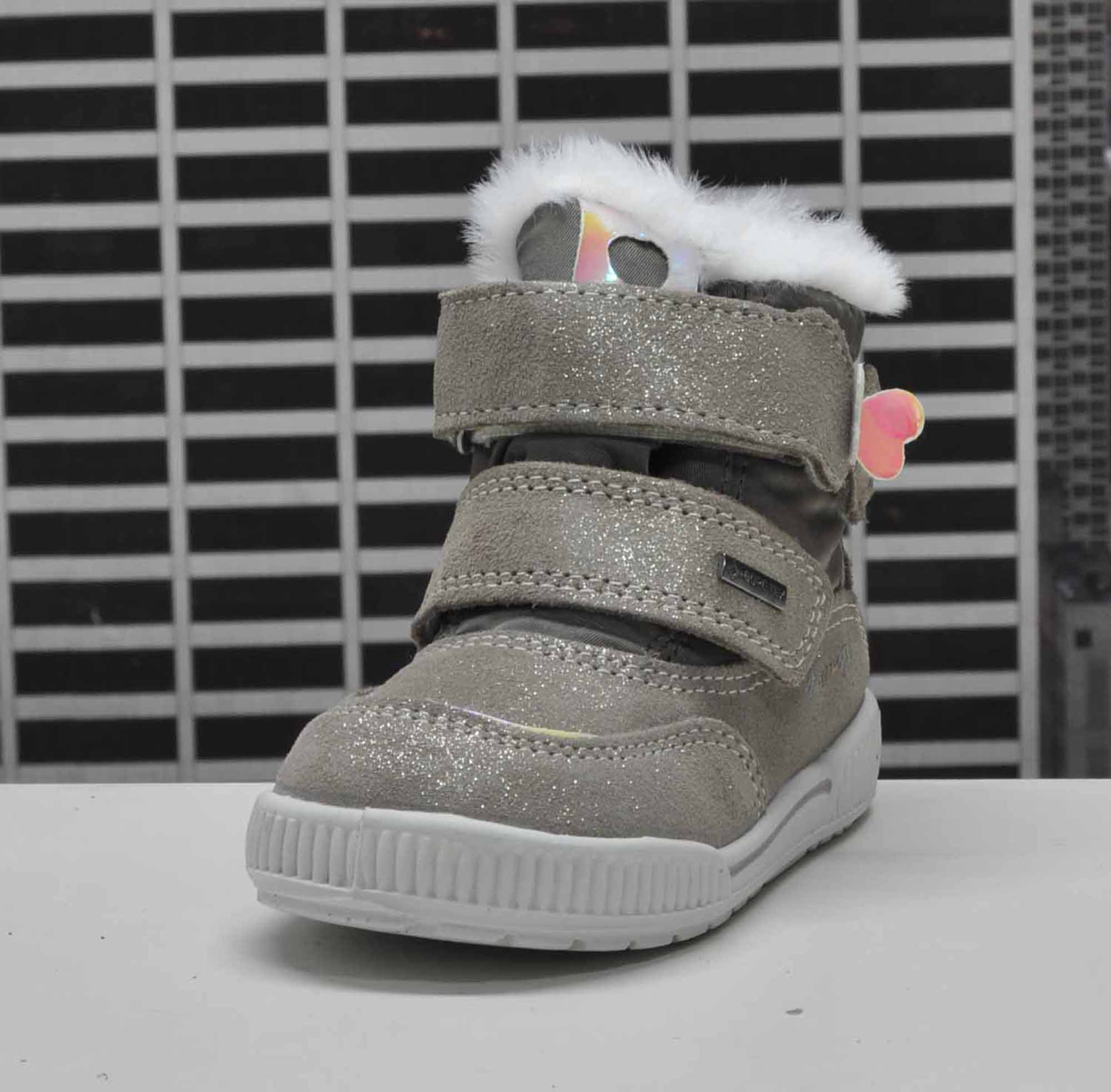 Предложение от итальянской компании Primigi. Обувь из натуральной кожи + текстильных материалов. Застегивается на липучку. Утеплена мембраной Gore-tex, задачей которой является поддержание соответствующей температуры и обмен водяного пара внутри обуви. Используемые материалы предотвращают попадание воды внутрь.