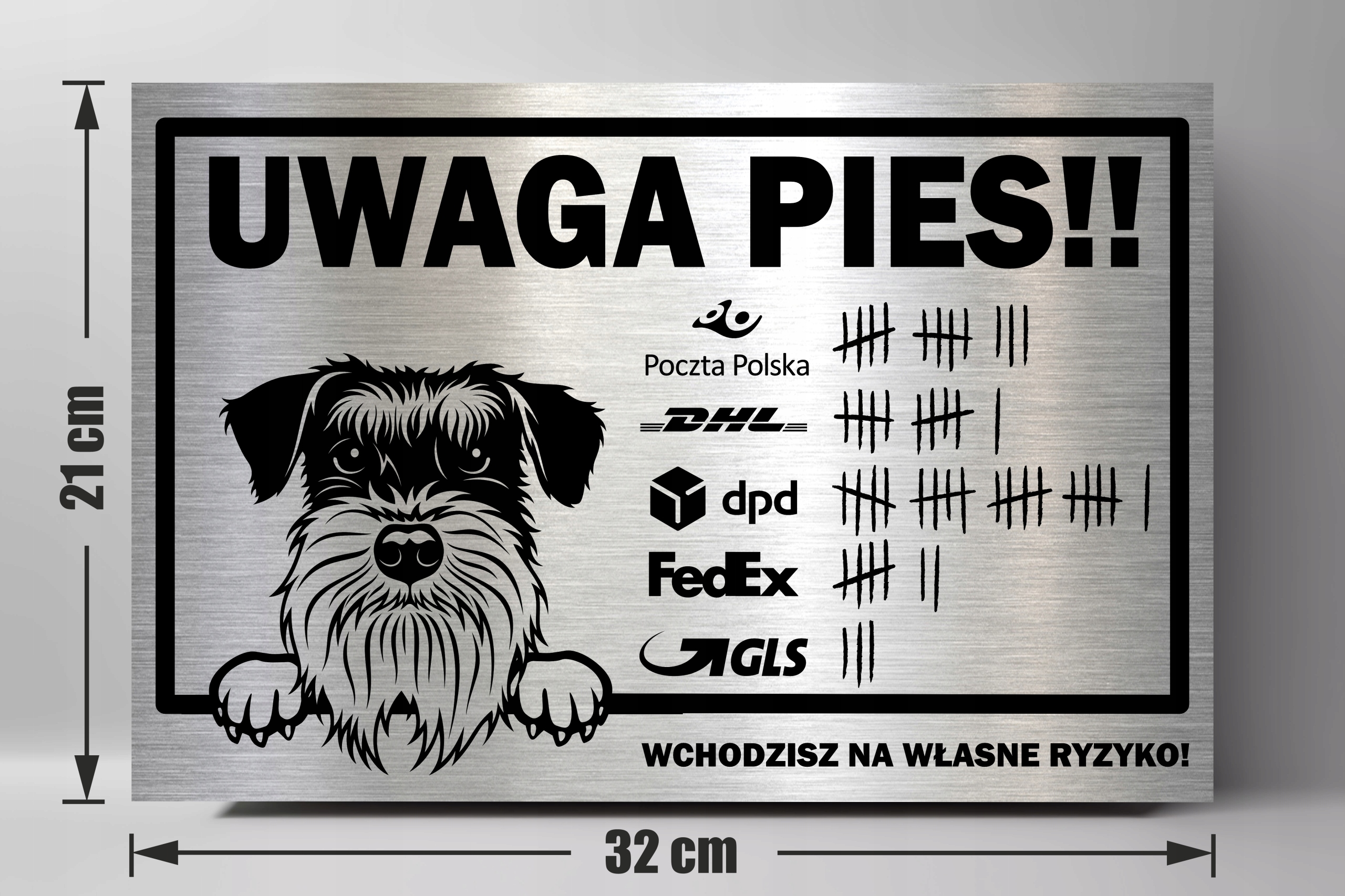 таблица "Примечание собака Sznauter" 32 x 21 см. Изготовлен из матового Дибонда, напечатанный с помощью УФ -метода. Очень долговечный и элегантный. h2>