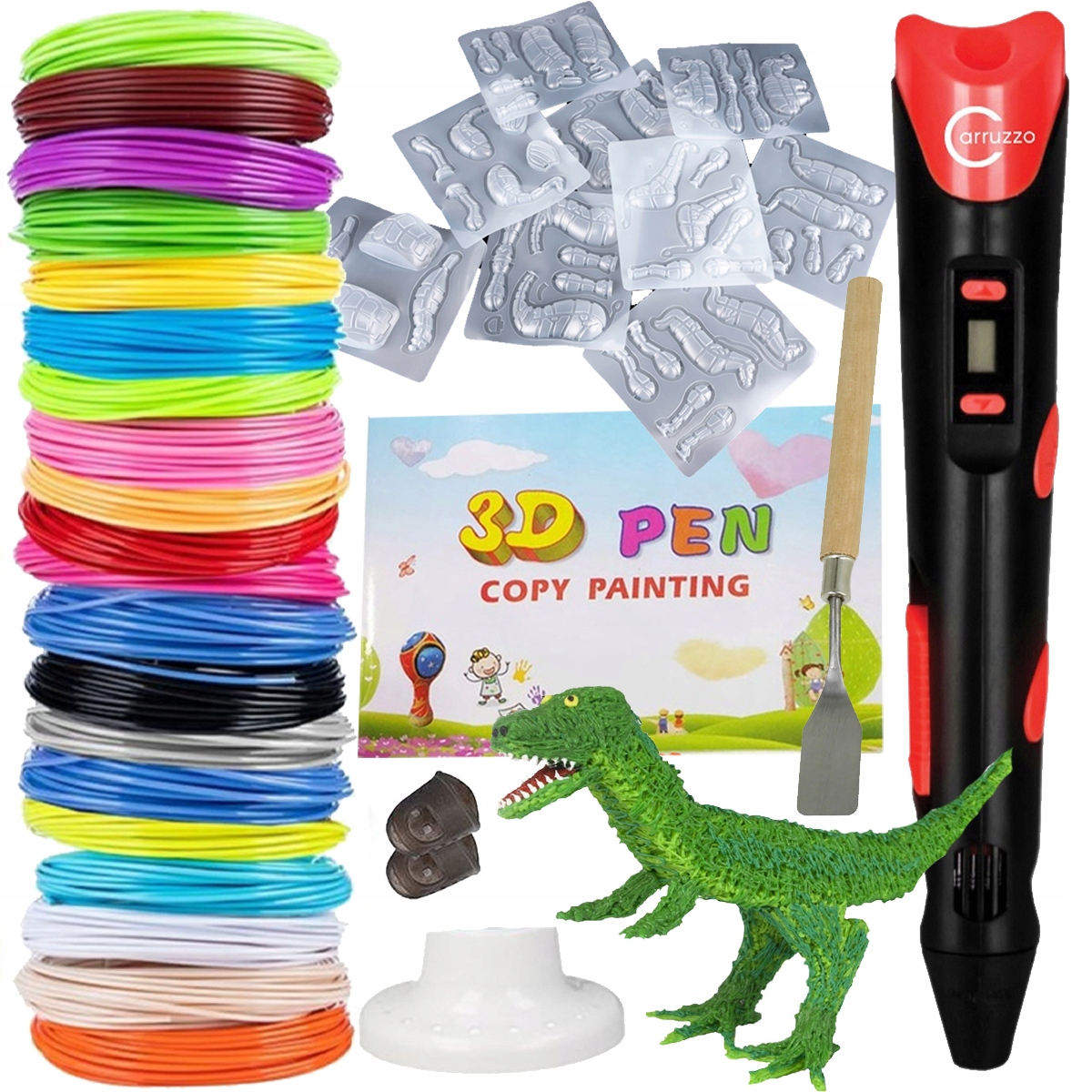 Набор 3D-ручки для принтера + 220 м нитей + 3D-шаблоны динозавров